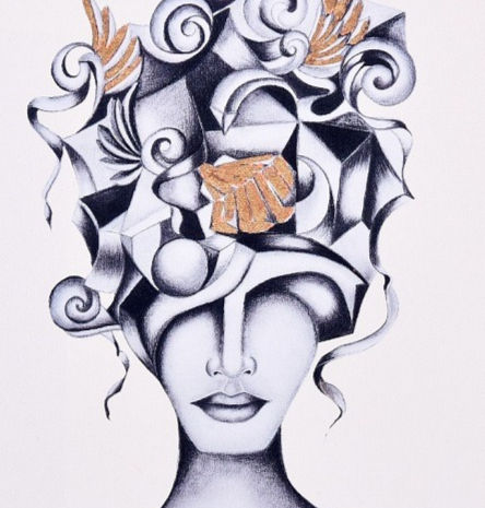 Afrodite é uma interpretação contemporânea da deusa do amor e da beleza. A obra incorpora símbolos associados a deusa, como cancha, perola, asas e ondas do mar. A paleta de cores rica em tons dourados, evocam luxo e divindade.