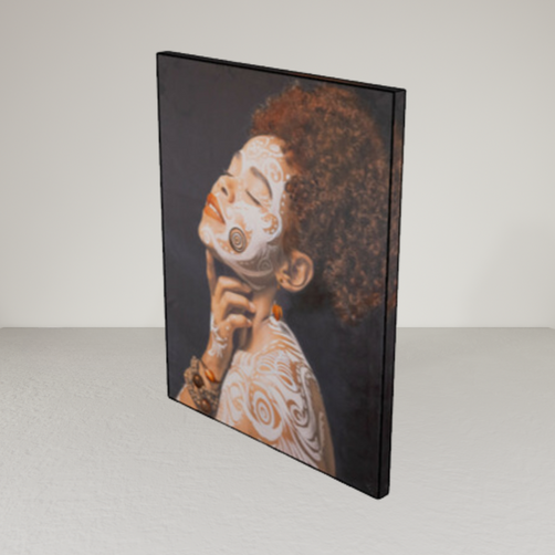 Técnica interferência. Pintura com tinta acrílica sobre foto da modelo impressa em tela.