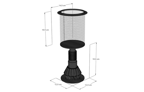 Dimensões Base: 12cm x 18cm (D x A), aproximadamente.